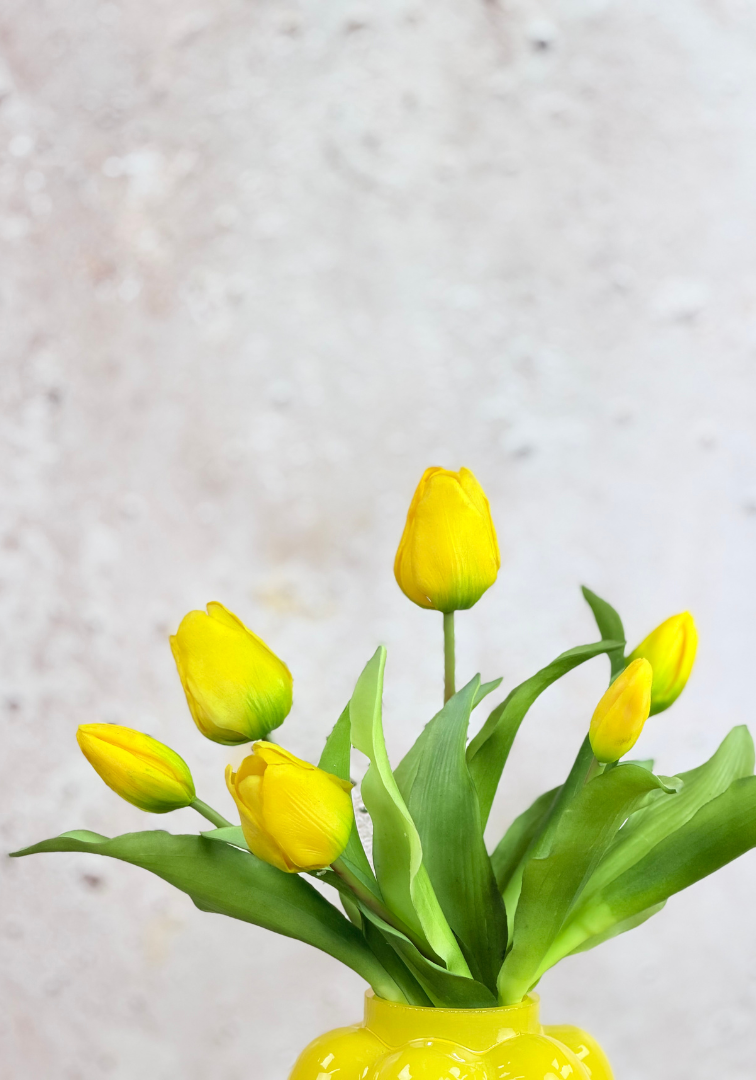 This beautiful silicone tulip bouquet is a fresh and cheerful addition to any interior. The bouquet consists of 7 silicone tulips that look and feel incredibly lifelike – almost as if they were just picked.