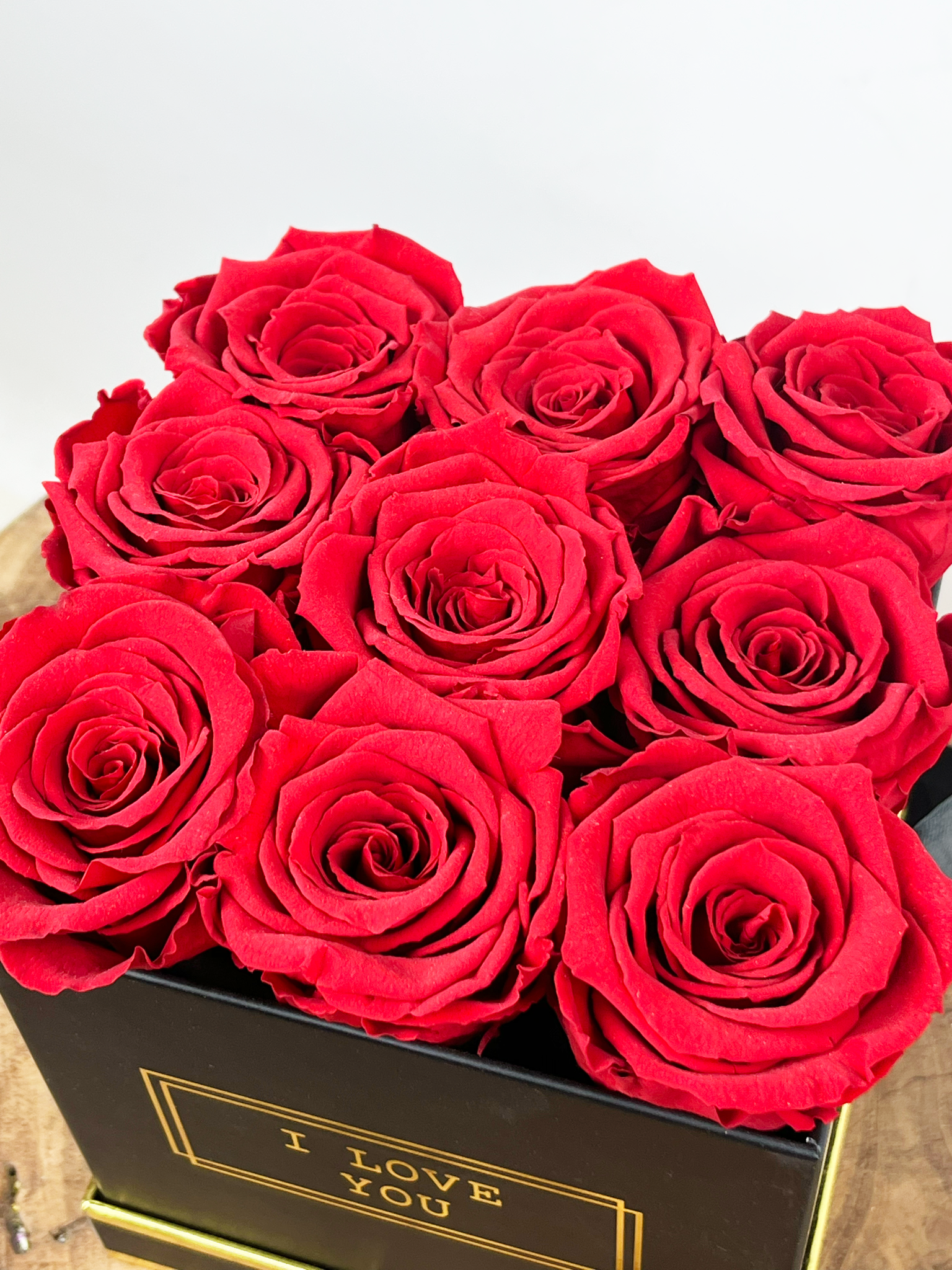Caja de lujo para rosas de larga duración - 9 rosas 'rojas