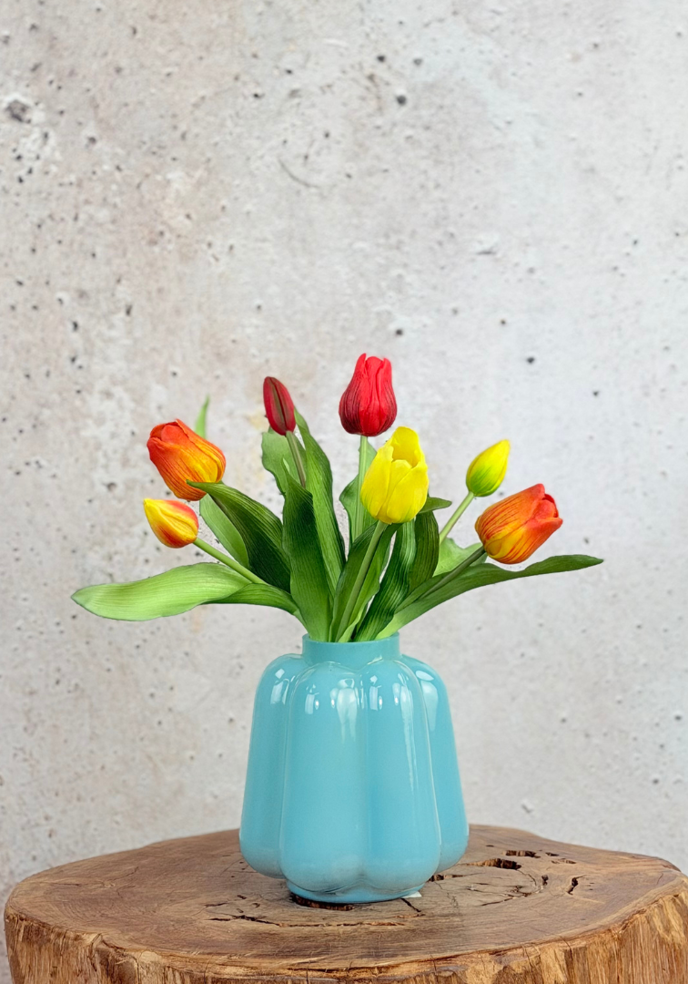 Este hermoso ramo de tulipanes de silicona es un producto fresco y alegre para colocar en tu hogar. El ramo está compuesto por 7 tulipanes de silicona que parecen y se sienten increíblemente reales.