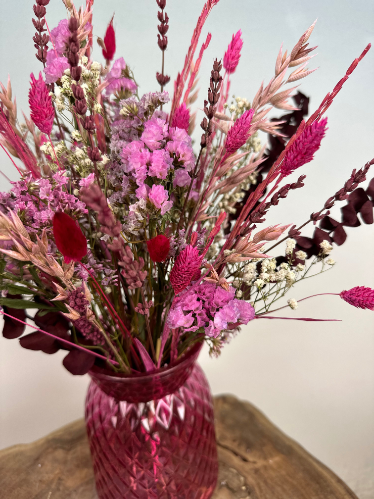 Ce magnifique bouquet de fleurs séchées est idéal pour égayer ta maison avec un beau style. Le bouquet de fleurs séchées tendance présente différentes sortes de fleurs séchées aux couleurs vives. Tu trouveras par exemple les couleurs fuchsia, rose et bordeaux dans le bouquet. Il respire la douceur et illumine totalement ta maison pendant les périodes ensoleillées.